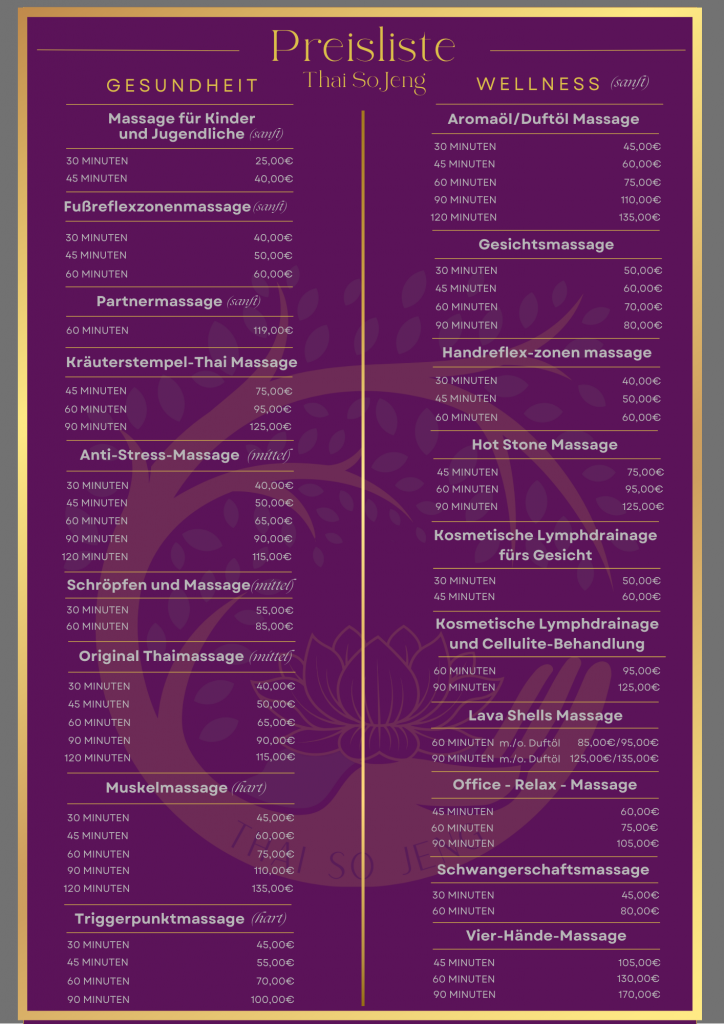 Diese Seite wird gerade gewartet, wir bitten um Geduld, aber ihr könnt trotzdeM unsere Preise einsehen und buchen! Seilerstraße 8 38440 Wolfsburg phoonam@thaisojeng-massage.de 053614635157 01631317657